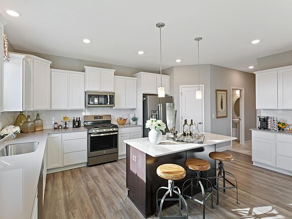 Lennar's popular Bristol with nature views! Exceptional curb appeal with welcoming covered front porch and 3 car garage. This home will check all your boxes! Perfect sized kitchen with a walk-in pantry, white soft close cabinetry, quartz counter tops, luxury vinyl plank floors and slate appliances. Home features a main level office with glass French doors. The family room is anchored by a stone surround fireplace and has large windows for an abundance of natural light. Upper level has a spacious owner's bedroom with on-suite bath & large walk-in closet, 3 nice sized secondary bedrooms, a hall bath and convenient laundry room complete upper level. The unfinished lookout lower level is ready for future expansion. Includes fully sodded and irrigated yard with front landscaping! Home is estimated to be completed by early February. Stop out to community for a tour!