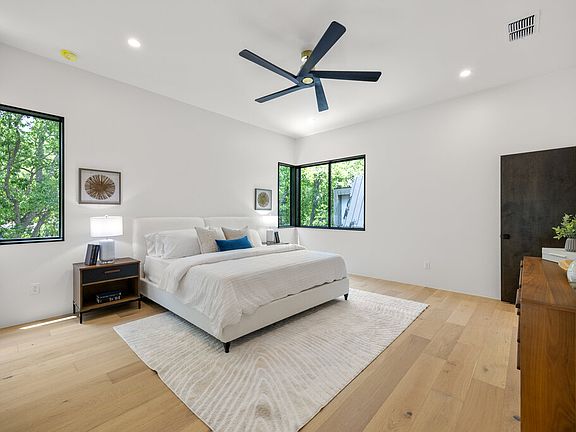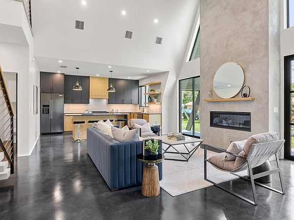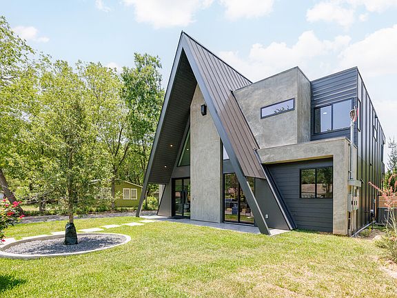 If you've been searching for a one-of-a-kind home that blends sleek modern design with timeless mid-century charm, your search ends here. Meticulously crafted with creativity, this stunning A-frame residence offers the perfect balance of style, space, and convenience. Just a short drive to downtown and the airport in the sought-after S. Manchaca neighborhood. From the moment you enter, you'll be captivated by the 30-foot ceilings and natural light. Custom steel railings, rich wood tones, and thoughtfully selected tilework create a warm yet contemporary ambiance. The open-concept main floor seamlessly connects the living, dining, and kitchen areas. A spacious utility room and a secondary bedroom with a full bath (leading to a covered porch and private backyard) complete this level. Admire the floor-to-ceiling stucco fireplace and exposed wood rafters that highlight the home's striking A-frame design. The generous primary suite features a spa-like bathroom and a walk-in closet. Two additional bedrooms one currently configured as a second living space with a beverage fridge and bar share a Jack and Jill style bathroom. This versatile area can easily be converted into a private fourth bedroom, adapting to your needs. Step out onto the covered balcony and soak in the serene surroundings. Nestled in a vibrant neighborhood, this home is just a short bike or scooter ride away from the hottest restaurants and entertainment along S. Lamar and S. 1st. Whether you're hosting gatherings or enjoying quiet evenings in your secluded backyard, this home offers the perfect blend of urban convenience and tranquil retreat.