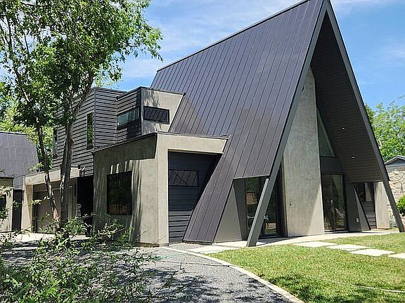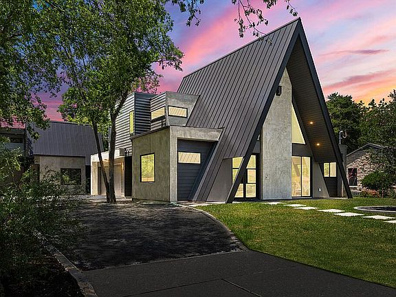 If you’ve been searching for a one-of-a-kind home that blends sleek modern design with timeless mid-century charm, your search ends here. Meticulously crafted with creativity , this stunning A-frame residence offers the perfect balance of style, space, and convenience—just a short drive to downtown and the airport in the sought-after S. Manchaca neighborhood. (We prefer the open concept front yard but for those who prefer more privacy, a fence could easily be incorporated around the front yard.) From the moment you enter, you’ll be captivated by the 30-foot ceilings and natural light. Custom steel railings, rich wood tones, and thoughtfully selected tilework create a warm yet contemporary ambiance. The open-concept main floor seamlessly connects the living, dining, and kitchen areas. A spacious utility room and a secondary bedroom with a full bath (leading to a covered porch and private backyard) complete this level. Admire the floor-to-ceiling stucco fireplace and exposed wood rafters that highlight the home’s striking A-frame design. The generous primary suite features a spa-like bathroom and a walk-in closet. Two additional bedrooms—one currently configured as a second living space with a beverage fridge and bar—share a Jack and Jill style bathroom. This versatile area can easily be converted into a private fourth bedroom, adapting to your needs. Step out onto the covered balcony and soak in the serene surroundings.