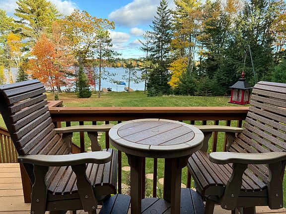 Discover a stunning, exclusive waterfront retreat offering impeccable craftsmanship and attention to detail. This second-story unit, located on the serene shores of Duck Lake, boasts exquisite ash Carside ceilings and floors, paired with luxurious granite countertops and a charming stone fireplace. The spacious, open layout invites a warm and cozy Northwoods ambiance while maintaining an airy feel. Enjoy panoramic views of the lake, with every room designed to maximize both space and comfort. Whether you're into fishing, swimming, kayaking, or birdwatching, this property offers endless outdoor adventures for everyone. Inside, generous-sized rooms provide a relaxing haven, while an elevator ensures convenient access. Additional features include an attached garage, extra storage space, and access to a private boat slip on the Eagle River Chain. PS... Furnishings and decore are Included!!