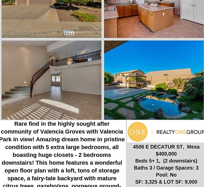 This 3325 square foot single family home has 5 bedrooms and 3.0 bathrooms. This home is located at 4506 E Decatur St, Mesa, AZ 85205.