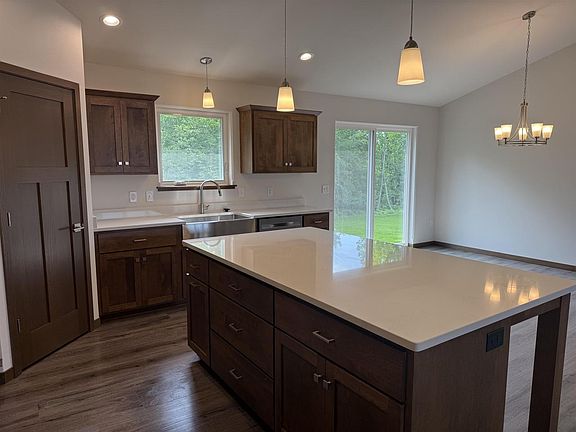 Oversized center islandThree-sided stone gas fireplaceFinished family roomBlacktop drivewayWalk-in closetLarge bathroomSpacious step-in pantry
