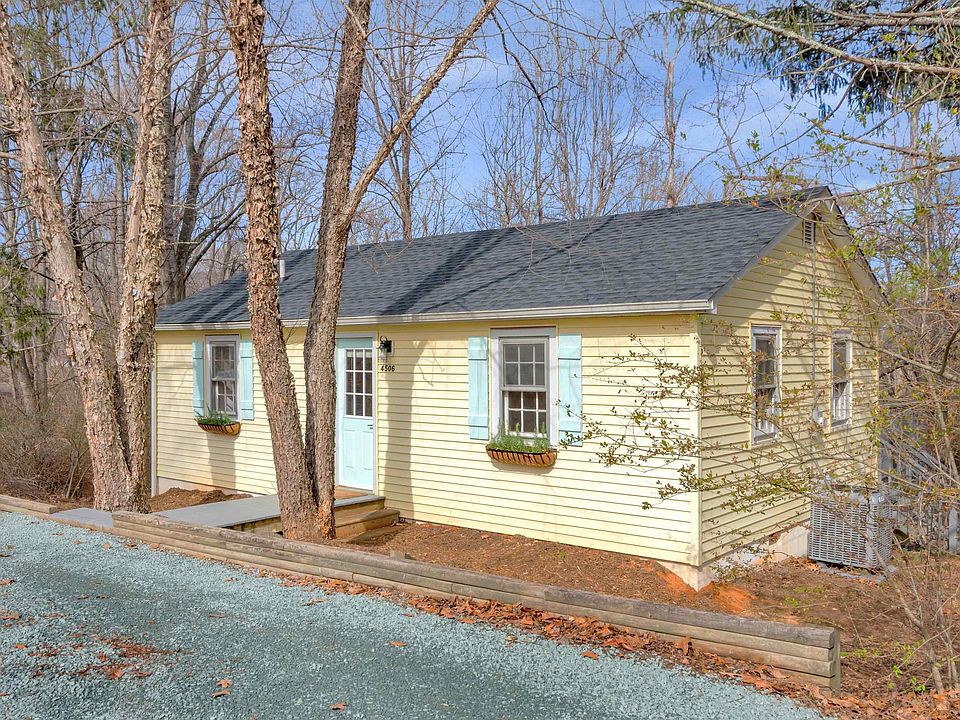 The definition of a cute cottage. Fully renovated in Crozet on a half-acre corner lot. All is new as of 2022: roof, HVAC, water heater, stainless appliances. Fully move-in ready and comes with all furniture and deck items. Refinished hardwood floors throughout, butcher block counters, laundry, and even a home office space off bedroom. Tiled bathroom with slate floor. Deck expanded to twice its original size and just freshly painted, perfect for entertaining and winter mountain views. Off-street parking. Convenient to both Crozet and Charlottesville. Crozet school system. Plenty of room to expand house footprint if desired. Outdoors space has limitless potential. Septic system upgraded in 2022.
