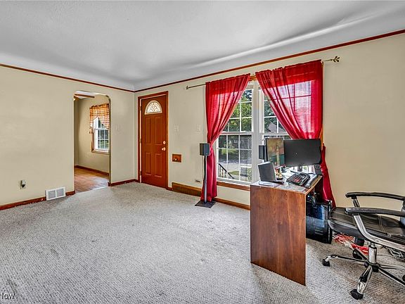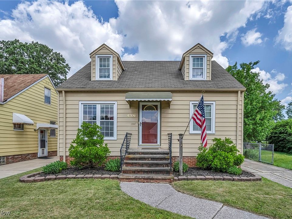 Welcome to 4506 Pershing Ave in Parma — a well-maintained 3-bedroom Cape Cod combining comfort, privacy, and convenience in a prime location. Inside, you'll find an eat-in kitchen with a gas stove, a spacious main-level layout with two bedrooms and a full bath, and an extra-large third bedroom upstairs with ample closet space. The partially finished basement adds flexibility with a second full bathroom, laundry area (washer and dryer included), and glass block windows. Ceiling fans throughout, newer vinyl windows, and central air ensure year-round comfort. The exterior offers standout features including a fully fenced yard, privacy shrubs, a large storage shed, and an oversized 2-car garage with electric. An extra-wide driveway provides plenty of parking, and the neighboring home is set further back, adding to the peaceful feel. Located just minutes from I-480 and I-77, this home offers quick access to downtown Cleveland, nearby Metroparks, and popular Parma dining, shopping, and entertainment spots. A perfect blend of suburban charm and city convenience!