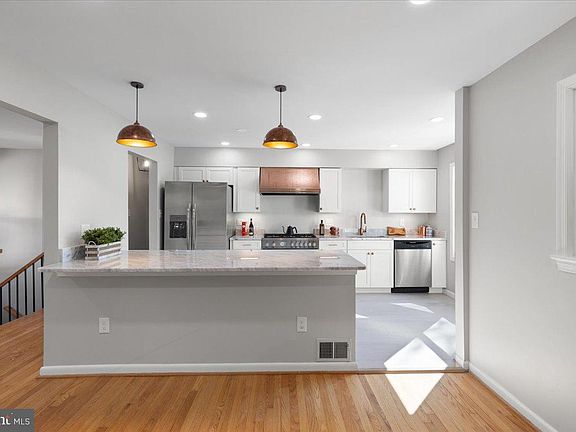 Welcome to your move-in ready home in Mount Rainier! Thoughtfully updated from top to bottom, 4506 Russell features 3 levels, a beautiful kitchen, spa-like bathrooms, a primary suite with an additional sitting room, covered porch, attached garage (rare for the area!), and a spacious fully fenced-in flat backyard. You’ll find outstanding original hardwood floors throughout the main level (in the dining area, living room, and bedrooms)! The stunning open-concept kitchen features granite countertops, stainless steel appliances, a rare extra-wide 36” Bertazzoni gas range with six burners (the standard range size is 30”), range hood, under-cabinet lighting, recessed lighting, tile flooring and plentiful counter and storage space. Natural lighting is abundant throughout the main level, and three bedrooms and one full bathroom are on this floor. The primary bedroom upstairs includes an en suite bathroom with double sinks, a walk in closet, and a separate sitting area or office area, with its own enclosed laundry room for easy access. You’ll find recessed lighting on all three levels of the home. The potentially rentable walkout basement offers a recreation room plumbed for a wet bar or kitchenette, a wood-burning fireplace, an additional bedroom and bathroom, a separate laundry room, and access to the garage. The level lot and flat backyard offers additional opportunities for customization. Enjoy your morning coffee from the covered porch off the kitchen. Host your next cookout in the backyard as guests flow in and out of your entertainment space! The house includes a one-car garage, and a flat driveway that can fit an additional car. Guests can find plentiful street parking in front of the home. New roof with architectural shingles (2024), vinyl siding on sides and back of house (2024), main level and basement level windows (2024), hot water heater (2024), refrigerator (2024), dishwasher (2024), six-burner 36” Bertazzoni gas range with hood (2024), primary suite carpet (2024), downstairs washer (2024), downstairs dryer (2024), HVAC with gas heating (2016). The home has proximity to Barnard Hill Park, the Mount Rainier Nature Center, the Gateway Arts District (including its own community Farmers’ Market on Saturday mornings!) dining (don’t miss Pennyroyal Station or Era Wine Bar), NE DC, West Hyattsville Metro Station on the green line (one mile away), and major commuter route 295.
