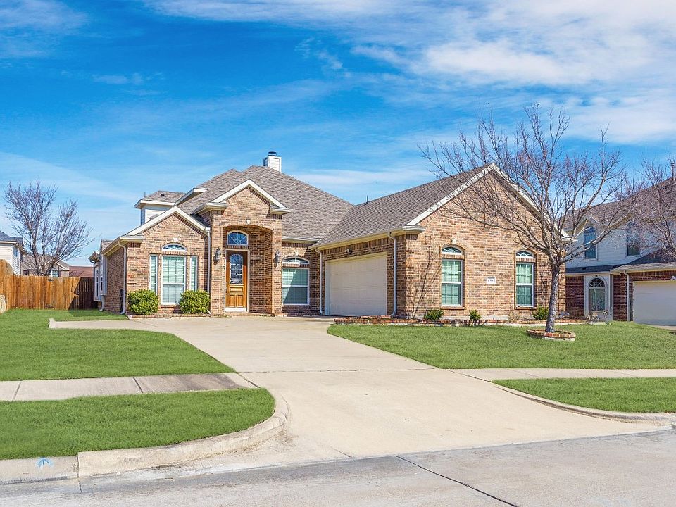 Inviting Home In Heron's Bay Estates, Garland! Fall in love with this 4-bedroom gem nestled in the serene Heron's Bay Estates. Being close to Lake Ray Hubbard and parks, plus it's in award winning Garland ISD, this property truly shines. This delightful 1.5 story brick home boasts an elegant floorplan with 3 bedrooms & 2 full baths on the main level, and 1 bedroom with a half-bath upstairs. Savor a cozy evening by the beautiful wood-burning fireplace of the large living area. The heart of the home, our kitchen, flaunts gorgeous cabinetry, gas cooktop, built-in oven and microwave, walk-in pantry and butler's pantry. It graces a formal dining room & breakfast room on either side. Unwind in the spacious primary bedroom featuring a garden tub, separate shower, granite dual-sink vanity & large walk-in closet. Outside, discover a covered patio perfect for grilling, an open patio area, and a generous backyard. Schedule your tour today with the listing agent!