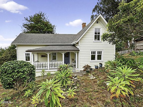 Perched above the Mendocino village sits the historic Jens Hansen House circa 1880 on .37+/- acres. The 3-bedroom, 1-bath home underwent an extensive restoration in 2009, while retaining its historic charm with original fixtures, including a working safe from the 1800s, and woodwork rarely found today. The renovation includes a perimeter foundation, all electrical and plumbing, wood windows and doors, a new roof, and reframing from the exterior to preserve the old-growth redwood interior. Custom-milled siding to match the original style, and much more. The only thing left is to add the finishing touches to the large kitchen. The spacious property features a separate carriage house with stunning views, making it a great spot for guests or an artist's studio. There are also historical photos of a water tower that may be able to be reconstructed with approval. Conveniently located to shopping, fine restaurants, beaches, and coastal activities while having privacy and a quiet setting.