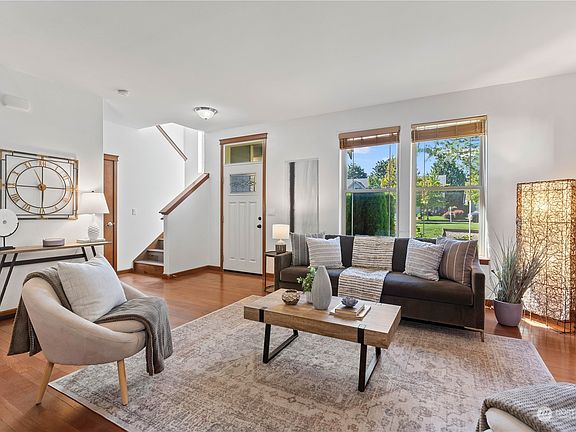 Step into this beautiful, well maintained 3 bedroom, 2.5 bathroom home located in a sought-after neighborhood. Beautiful hardwood floors span the entire space, enhancing the cozy and welcoming ambiance. The open layout is ideal for social gatherings and effortless entertaining. The kitchen features plenty of counter space and storage, simplifying meal prep. Upstairs, you'll find a delightful loft area and two generous bedrooms, including a primary suite with a 5-piece bathroom and walk-in closet. Take advantage of direct access to the community park and convenient location near highways 512 and 167. Back on market, buyer got cold feet.