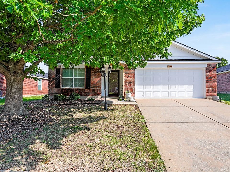 This 3-bed, 2-bath home features a brand new AC system along with a freshly painted exterior & interior, new flooring, and a backyard firepit area. Step through the front door, and you're greeted by a spacious living area bathed in natural light. The kitchen includes all appliances pictured and freshly painted white cabinets. There is also a dining area in the kitchen. The second living area features a fireplace, a ceiling fan, ample space, and the door to get to the backyard. The primary suite boasts ample space, a walk-in closet, a ceiling fan, and an en-suite bathroom for added privacy and convenience. The primary bathroom has a stand-alone shower, a garden tub, and a double sink vanity. The two additional bedrooms offer flexibility for guests, children, or a home office, each have their own closets and a ceiling fan. The guest bathroom features a vanity along with a shower & bath. The backyard was recently landscaped to include a fire pit area with chairs.