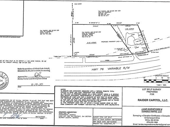 Great Hwy 76 property with approximately 25,000 cars passing it daily and almost 500 feet of Hwy 76 frontage! 2.43 acres of raw land ready for your next project. Land is zoned commercial, but adjacent property has been rezoned so the possibilities are endless for this property. Property is located between 4433 Hwy 76 and 4525 Hwy 76. Billboard on the property generates $2600 per year and can be removed. Property formerly contained a mobile home so it likely still has a water tap, septic tank and power line ready for use!