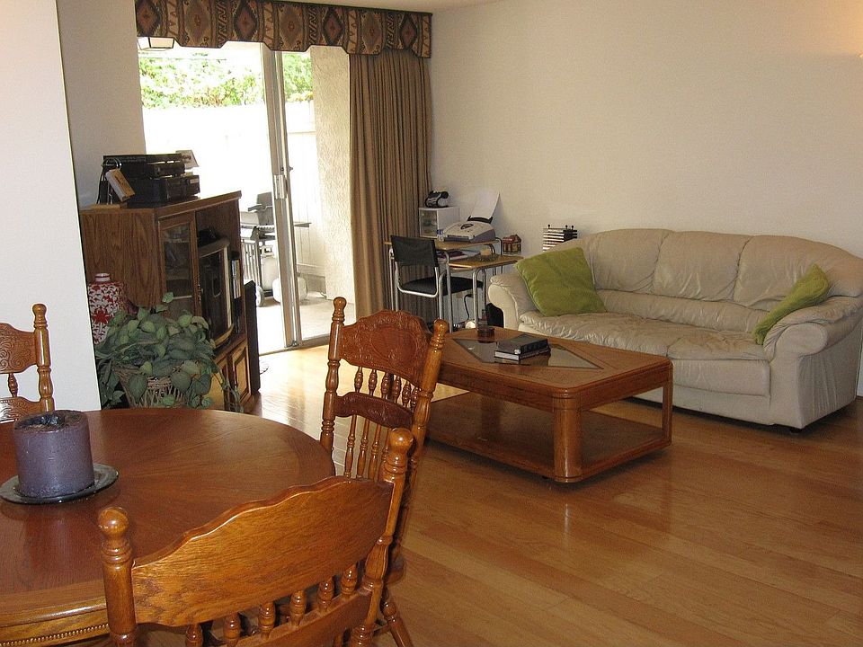 Cozy 2 BR condo located in the back of building with large enclosed patio which can access directly the pool & spa area. The dining and living room have nice hardwood floors and fireplace. Good storage in the unit and additional storage space on the 3rd floor. The compact kitchen as a large pantry. Newer appliances. Guest bedroom with walk-in closet & sliding door to access the patio area. Satellite dish included without warranty. HOA is $320/ mo