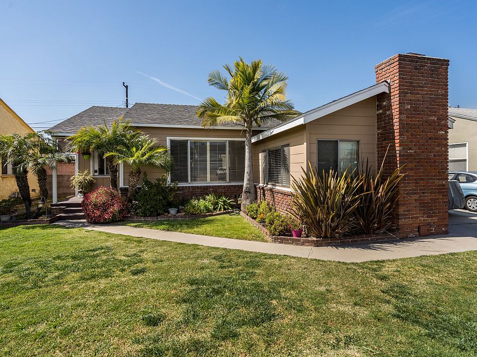 Welcome to Lakewood! Residing on a sunny street is this charming 1,115-Sqft home of 3-bedrooms and 1-bathroom with a detached garage! Gorgeous greenery and plants lead up to an inviting front porch. Inside is an airy living room complete with lovely wood like flooring, elegant crown moldings, and a large picture window fitted with plantation shutters throughout. In the spacious kitchen, granite countertops, neat cabinets, recessed lights, and an open breakfast bar creates the setting for all your culinary creations. Through the lovely dining room is a double door entrance to a step-down bedroom featuring plush carpet floors, a wood panel accent wall, beamed ceilings, and even a separate entrance to the side of the house. The other two main bedrooms includes accent moldings all around, wood floors, recessed lights, and built-in closet storage. The main bathroom is stylized with patterned tile and includes a shower/tub combination. Venture out to the back yard to enjoy an open patio area with lovely section of grassy space and a dainty fruit tree. Located down the street from Herbert Hoover Middle School and Lakewood Golf Course, minutes from the Ralphs, Whole Foods, Lakewood Center, Long Beach City College, popular dining, and more!