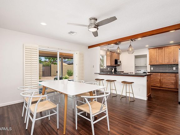 Charming Old Town Scottsdale Home in a Highly Desirable Location! Light and bright 3 bdrm/2 ba floor plan with upgrades including plantation shutters, updated flooring, fixtures, neutral two-tone paint, and a new A/C + ducting (2021). Gourmet kitchen features abundant custom cabinetry, quartz counters, stainless appliances, breakfast bar & backsplash, with inside laundry & built-in cabinets nearby. Backyard oasis offers an 8-ft diving pool, covered patio with exterior lighting & sun shades—perfect for relaxing or entertaining. Primary suite includes an upgraded en-suite bath. No HOA and eligible for short-term rental use such as Airbnb or VRBO! Prime location near Camelback Park, Chaparral Lake, and Old Town Scottsdale's shops & dining! See upgrade list in documents.