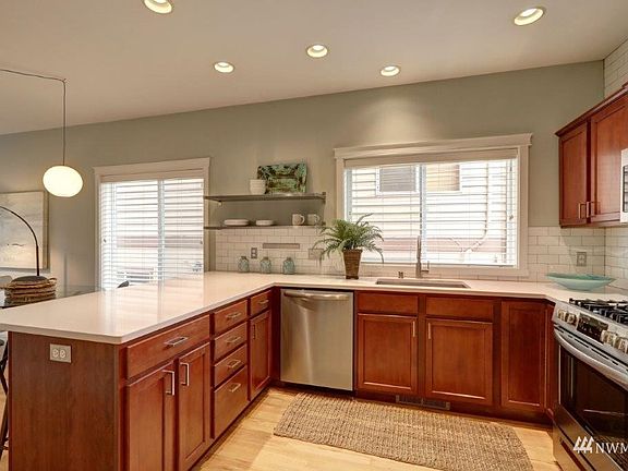 New price on this fabulous villa-inspired end-unit townhouse, perfectly located in the heart of West Seattle. Easy walk to Trader Joe’s, Whole Foods, WS Farmers Market, restaurants, & bus stops. This special unit boasts a private patio, balcony & a GARAGE. The main level welcomes you with an elegantly updated kitchen, new appliances, refinished wood floors, a gas fireplace & sliding door to a covered balcony. The lower floor bedroom ensuite doubles as a home office. The upper floor offers a spacious primary that easily fits a king-sized bed & a second bedroom w/view of the Cascades. This unique urban oasis is the best of Seattle living. No HOA dues or rental cap. Seller credit of $7K toward interest rate buydown to lower your payment!