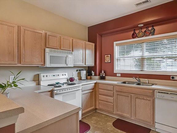 Cozy fireplacePrivate patioBreakfast barOpen floorplanWell-appointed kitchenGenerous closetsBright dining area