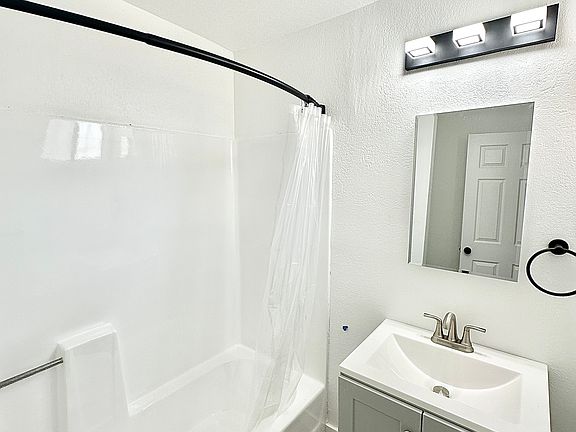 Newly remodeled with faux hardwoid floors, bright white walls and custom designed bathroom