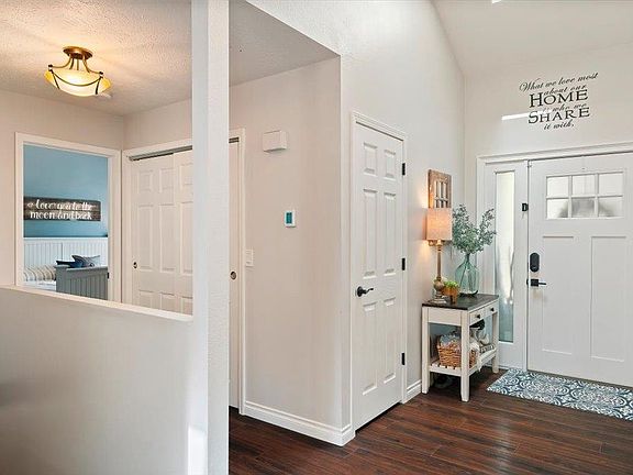 Stunning 4BR/4BA home on expansive 1.42 acres in sought-after Mead School District! Extensively updated with gourmet kitchen featuring Corian countertops, new cabinetry, stainless appliances, and pantry flowing seamlessly into great room with LVP flooring. Charming dining area off kitchen and great room. Master suite boasts ensuite with dual vanities and walk-in closet. Bonus loft above garage showcases new golf simulator and 3/4 bath, perfect for recreation or in-law quarters. Newly finished basement offers projector theater system ideal for entertaining. Updated HVAC with gas furnace and central air ensures year-round comfort. Relax in hot tub on back deck while enjoying the serene setting. No HOA restrictions, horses welcome, with ample space for large shop or outbuildings. This exceptional property combines luxury updates with endless possibilities on beautiful acreage. Don't miss this rare opportunity!