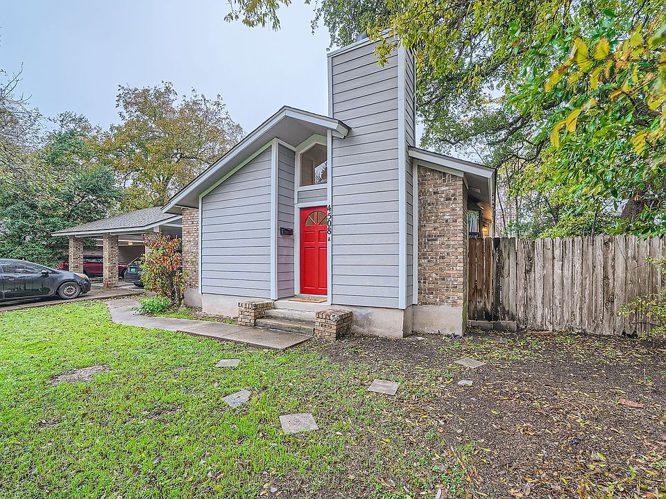 Step into the charm of East Austin with the half newly renovated duplex, transformed into your new house of your dreams. Located just 2 miles from the UT Campus and 2.5 miles from downtown Austin, this home is perfectly situated for urban living. Walk to Mueller, where you'll find an array of bars, restaurants, and even a unique HEB with an outdoor bar and live music. Nearby amenities include Dell Children's Hospital, major retailers like Home Depot and Best Buy, Alamo Drafthouse Cinemas, and a vibrant Farmer's Market. Enjoy the convenience of Patterson Park across the Airport, offering tennis courts, playgrounds, fields, and a city pool. Discover this epic tree-lined neighborhood, called Delwood, of East Austin. Two bedroom, 2 bath duplex, with a large fenced yard and one carport. Vinyl floors throughout, vaulted living room ceiling with corner fireplace. Windows are surrounding the house to get more natural light. The little patio on the side will give you the little private space to enjoy the outside fresh air and the nature. Great separation between bedrooms. This neighborhood has a nativized flock of peacocks that you will see frequently walking around. Pet friendly with $300 non-refundable pet fee per pet, limit 2 pets.