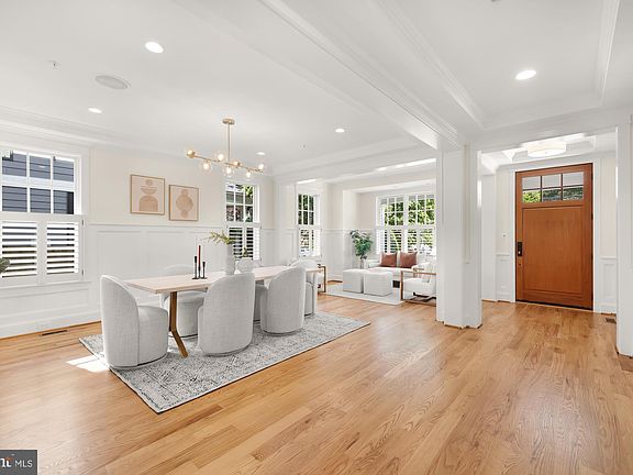 Welcome to your urban sanctuary! Nestled in the heart of highly sought-after East Bethesda, this home epitomizes modern elegance and functionality. Enter this Douglas Construction home to discover a thoughtfully laid-out main level boasting a seamless flow ideal for both daily living and entertaining. The foyer welcomes you with its polished hardwood floors and leads gracefully to the living and dining rooms, offering refined spaces for formal occasions with sophisticated molding details and gorgeous trim throughout. In the heart of the home, an updated kitchen with lustrous quartz countertops, stainless steel appliances, and ample cabinetry is open to both the breakfast nook and the lovely coffered family room, which is wrapped in windows, providing an abundance of natural light. A sleek bar in the dining room and a main level powder room enhance the home's entertainment capabilities. Rounding out this level is a spacious mudroom with direct access to the two-car garage, providing ample storage solutions. On the upper level, the primary suite exudes serenity with dual his and hers closets and a spa-like ensuite bath complete with steam shower and soaking tub, offering a calming retreat after a long day. This level also offers two generously sized bedrooms sharing a well-appointed Jack and Jill bathroom with separate sink rooms, while a fourth bedroom boasts its own ensuite bath. Convenience is key with a laundry room on this level with extra-large capacity machines. A versatile loft area on the third floor offers an open lounge or office space with an additional large bedroom and full bathroom. Descend to the expansive basement, where recreational opportunities abound with ample room for lounging and activities, space for a gym, plus a sixth bedroom and full bathroom. Outside, the airy backyard beckons with lush greenery, gorgeous hardscaped garden beds, and a spacious pergola, inviting you to savor dinners in an al fresco room decked with festive string lights and a ceiling fan for warm summer nights. This backyard oasis is one of the best in East Bethesda for both family and entertaining. The front porch, charming and inviting, sets the tone for warm welcomes and relaxed evenings. Enjoy the convenience of urban living paired with the friendliness of this beloved community. Easy access to downtown Bethesda, two Metro stops, commuter routes, and numerous parks, every amenity is within close reach. Enjoy the finest Montgomery County schools, dining, fitness facilities, and vibrant nightlife, all just minutes away from your doorstep.