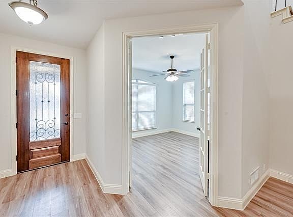Spacious 2 story in sought after Mansfield ISD will satisfy even the choosiest of buyers. Great curb appeal in an equally fabulous neighborhood with 2 swimming pools, walking trails. Downstairs has wood look luxury vinyl flooring throughout the main living areas, kitchen and study, along with built in mud bench. Dramatic open kitchen with stainless steel double ovens and a huge island counter open to the living room. The primary bedroom with en-suite bath is downstairs with quality tile work in the large shower, dual sinks and a large closet. Upstairs you are greeted with a huge game room that opens onto a balcony. 4 bedrooms and 2 full bathrooms upstairs. One bedroom is so large that it could easily be a second owner's suite leaving the downstairs suite for multigenerational living. Extended and covered patio with built in TV mount and fire pit, plumbed for gas make a truly wonderful place to relax and unwind.
