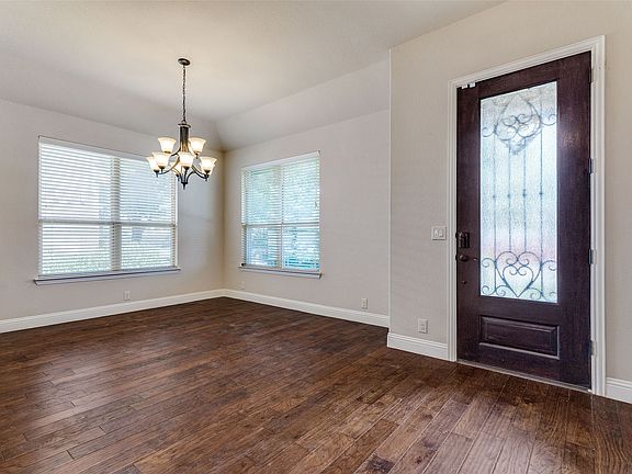 Get ready to come see this fabulous upgraded Bloomfield home in Summer Creek Ranch! It's just gently been lived in and offers all the upgrades you'd want, but don't want to pay for in new construction! Beautiful wood flooring is found throughout the living, dining and kitchen! Adorable frosted glass doors to the fancy utility room and walk-in pantry! High grade cabinetry in pristine condition in the kitchen to include the eat-up island and built-in buffet! Gas cooking for the ones who like to cook! With all this space and the easy flow into the dining and living area, this home is meant for family enjoyment and entertaining! It's the place you'll want to celebrate holidays because there's so much room! The front living area makes a great office or second dining space! The primary bedroom is enormous and includes space for workout, working, or just relaxing! The walk-in closet is amazing, too! Two other bedrooms and a full bath are separated in the rear of the home and the staircase to the upstairs suite is there, as well. So many walk-in closets with another large closet under the stairs! This popular floor plan features an upstairs living area, bedroom and full bath! Perfect for so many situations! But, let's not forget the outside! The drive-up curb appeal is wonderful due to the brick and stone facaad and lovely landscaping! The backyard is also memorable due to the size, landscaping and nice covered porch and deck! All this in such a convenient south Fort Worth location near amenities, schools and the Chisholm Trail Parkway!