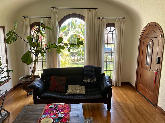 This beautiful Spanish-style home, a few blocks away from the historic Leimert Park, is for rent in Los Angeles! The house has two bedrooms, a living room, a dining room, an office/sun room, 3 walking closets, a full kitchen, a washing/drying room, 1.5 bathrooms, 2 parking spaces, an outdoor shed for extra storage, and plenty of patio/backyard/garden/deck space (shared with the back unit, which is currently occupied). The rent is $3,800 + utilities. Hardwood floor across the house, minus the full bathroom. Great natural light, with lots of windows in every room, including 4 skylights. Kitchen has plenty of room for pantry and includes great-quality appliances (Kitchenaid stove/double oven, Samsung stainless steel fridge, washer and dryer), Central AC, controlled by the smart thermostat Nest. Nest controlled cameras and primary door bell. Solar panels. 1 year lease minimum