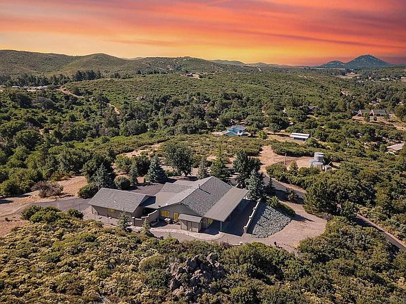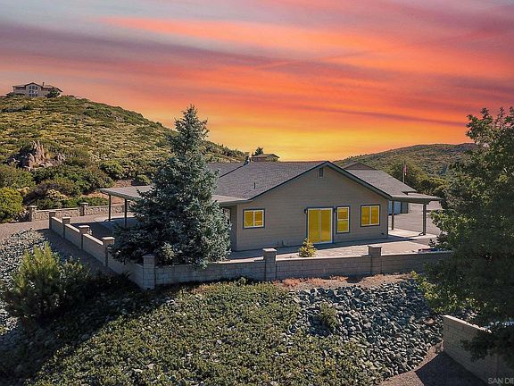 STUNNING VIEWS from this single level upgraded home in Julian. This home offers over 5 acres of land and a detached 3 car garage and detached oversized 2 car tandem garage. There are many mature manzanita's, pines and blue spruce that are abundant on the property. Large covered front porch as you pull into the drive. The back porch offers amazing views of the mountains and spectacular sunsets. Come see all this beautiful home has to offer. Close to downtown Julian and Cuyamaca lake This home has been lovingly cared for and it shows. Hardwood flooring in the main living areas and hallways of the home, gorgeous granite counters in the oversized kitchen that offers a kitchen island, 6 burner cooktop, double ovens, wine refrigerator and walk-in pantry. The master suite is spacious and bright and offers a spacious walk-in closet with organizers, large master bath with custom walk-in shower with rain showerhead, stone floor and towel warmer. The living room offers amazing views of the mountains and sunsets. Wood burning stove with custom hearth adds warmth to this room. The office/den/family room area is adjacent to the dinning room for a great entertaining spot. Back-up generator that runs the home installed by SDG&E. This home offers several areas to sit and relax and watch the world go by in solitude.