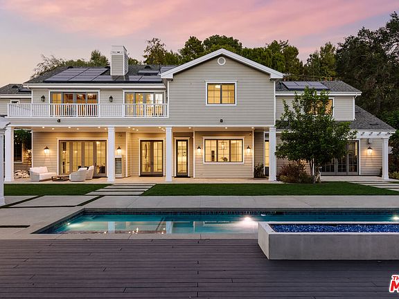 Introducing 4509 Noeline Avenue - tucked behind gates and positioned on over half an acre, south of the boulevard in one of Encino's most coveted neighborhoods, this impressive estate blends timeless traditional architecture with contemporary sophistication. A dramatic two-story foyer opens to an elegant formal dining room and a sunlit kitchen that flows effortlessly into the inviting family room with fireplace and stunning custom built-ins. Walls of glass reveal the resort-style backyard complete with covered patios, a sparkling pool and spa, expansive lawns, sports court, and multiple decks designed for both grand entertaining and relaxed living. The main level offers a host of amenities, including a richly paneled executive office/library, a tiered screening room, billiards lounge, butler's pantry, powder room, guest suite, and one of two laundry rooms. Upstairs, the primary wing serves as a private retreat, featuring a sitting room with fireplace, cathedral-beamed ceilings, dual walk-in closets, and a marble-clad spa bath with soaking tub and steam shower. French doors open to a generous terrace overlooking the manicured grounds. Three additional en-suite bedrooms and an airy upstairs family room complete the second floor. A separate guest house offers a welcoming living room, kitchenette, luxurious bath, and private bedroomideal for guests, staff, or extended family. The expansive rear grounds are a true entertainer's haven, complete with an outdoor bar and BBQ area, vast lawns, and a versatile sports court perfect for pickleball, basketball, roller skating, or large gatherings, all centered around the shimmering pool and spa with elegant arched fountains. Set well back from the street behind double gates, the property provides exceptional privacy with tall hedges, a circular motor court, a cathedral-ceilinged three-car garage with built-in storage, and secondary gated access for vehicles or catering service. With refined designer finishes, smart-home integration, and uncompromising craftsmanship throughout, this estate embodies the best of luxurious California living.