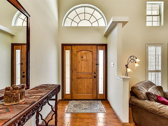 Situated on quiet street seconds away from Hwy 635 LBJ & Midway Rd, you will notice that ceilings have been raised & vaulted, providing a grand entrance, flooded by additional light with added windows. The wood-look tile planks flow seamlessly from room to room throughout the entire home, no carpet. Kitchen designed for daily chefs, high end appliances, abundant countertop space & cabinet storage throughout. Rear motor court with electric gate, 8 foot board-on-board fencing. Huge covered patio expands to a low maintenance, xeriscaped backyard complete with fire-pit. Exterior storage shed designed to match main home exterior, easily converting to man-cave or additional living space. Huge value $per sqft. Hurry!