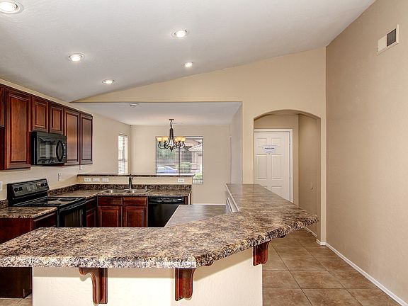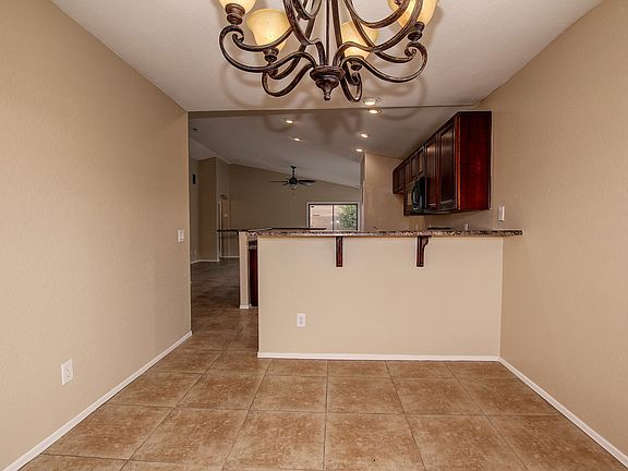 Come relax on the covered porch at this single-story Laveen home! The exterior accents add a nice contrast to the green shrubbery in the front yard. Fresh interior paint and brand new carpet grace the interior, and the backyard is complete with a covered patio. Enter to find the dining area, illuminated by a chandelier and windows overlooking the front yard. The kitchen follows, with inset lighting, stained cabinets, a pantry, and a bar top counter. Adjacent is the family room, which enjoys a tiled floor, vaulted ceilings, and a sliding glass door leading to the back yard. Ceilings soar in the Master suite, which sports a walk-in closet and an ensuite equipped with dual sinks and a shower/tub combination. Additional bedrooms feature ceiling fans and share a full bathroom. Home is nearby Laveen Village Marketplace, which hosts a number of shopping and dining options. All Opendoor homes come with a 30-day satisfaction guarantee and one-year premium warranty. Terms and conditions apply. Open House: Mon-Sun, 6am-9pm