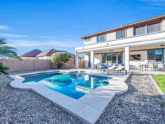 The most popular large floorplan in Dobbins Point is now available! Instead of feeling cramped in your small home, expand your possibilities and breath easy in this spacious 6 bedroom, 4.5 bath home. There's plenty of room for everyone, making it easy to escape to your own private happy place. A great multi-gen home as well and a bedroom downstairs. With nearly 3,800 sq ft, you'll enjoy holiday celebrations together and cozy family meals. Dive into your sparkling pool in the luxurious backyard, and enjoy the private neighborhood parks + walking paths. Nearby South Mountain Preserve provides beautiful mountain views and accessible outdoor adventure for everyday hiking + biking trails. This home provides exceptional value and livable luxury. Come see your new home in Dobbins Point!