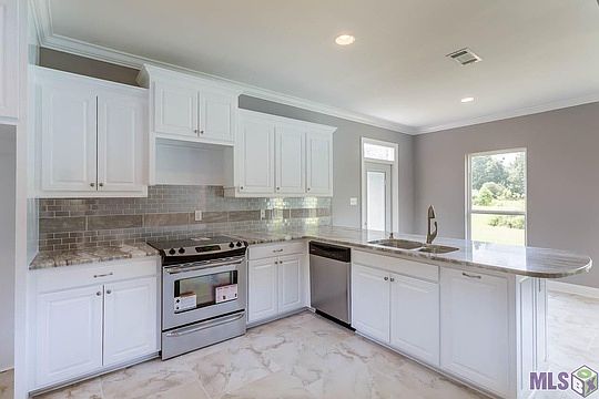 RARE FIND! Beautiful 3 bedroom/ 2 bath custom home with office situated on just under an acre of land. No Flood Insurance Required! This home has so many unique features. As you enter the front door you will notice the high cathedral ceilings, wood floors, and gas fireplace with custom built ins. The kitchen is every cooks dream. Very spacious with lots of counter space, stainless steel appliances, granite counter tops, and a view of the backyard. These two rooms alone are perfect for entertaining. As you venture to the bedrooms you will notice it is a split floor plan. The master bedroom is also spacious and has a recessed ceiling with an antique bronze fan, a huge walk in closet with lots of custom shelving. The master bathroom is a must see with a custom tile shower with shower heads including a rainfall shower head above the shower. It also includes a large soaking tub and granite counter tops. The office can be utilized as an extra bedroom, hobby room, etc. The house has so many features including gas tankless water heater, 2 HVAC units, large attic with insulated roof, etc. This home want last long. Schedule your showing today!