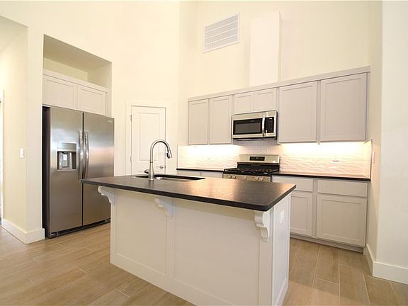 New modern design duplex! Also included brand new side by side stainless refrigerator, washer and dryer. This 3 bed 2 1/2 bath plan has an open living concept with tall ceilings and tons of natural light. Kitchen has granite countertops, stainless appliances, a large pantry, and a gas range. Primary suite is on the main floor and has a beautiful walk-in shower and a large walk-in closet. Two bedrooms upstairs with a full bath and landing area. Wood look tile in main living areas, 2" faux wood blinds, extra storage in the upstairs attic. Property has a private back patio and wood privacy fence. Owner must approve pets and no smoking. One year lease, no smoking