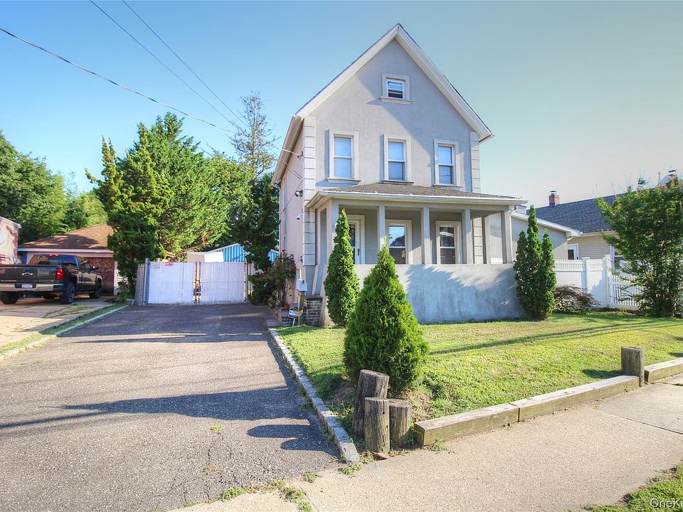 Introducing this Freeport Stucco Colonial on an oversized 60 x 139 foot property. This homes Main Level features a formal Dining Room, Eat In Kitchen and Fabulous Great Room with Vaulted Ceilings, a Stone Gas Firelace and Skylights and Sliders to a Large deck and expansive private yard.. The second level features 2 bedrooms and a Full Bathroom. The Oversized 60x139 Property is perfect for a landscaper or a contractor with its Massive detatched 2 car Garage and this home also has a full basement. Property taxes are $7,560.48 plus village tax of $2,740.57, Total Taxes are $10,301.05.