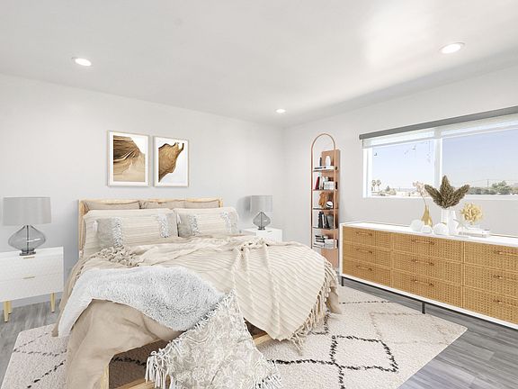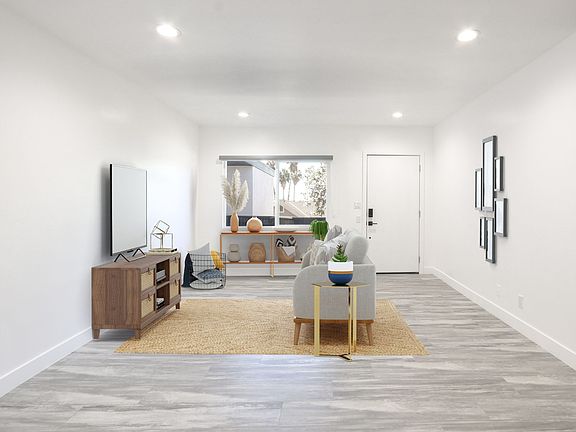 Carefully restored and designed by a renowned LA designer, these 1960s modern luxury rental homes feature keyless entry door locks to spacious one and two-bedroom floor plans with newly renovated kitchen and bathrooms. The kitchen boasts sparkling white stone quartz countertops with brand new self-closing cabinetry and high-end stainless-steel refrigerators with matching gas cooktop with oven and microwave. iRing doorbells with a smart home video security camera are also included as well as a community washer and dryer room. Bathrooms feature porcelain tiled bathtubs and glass shower doors. Each rental home also includes central A/C cooling and heating w/ recessed lights & luxury style cellular shade window blinds and distressed wood plank floors.