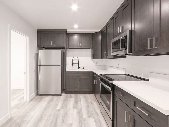 Newly modernized facadeModern designer cabinetryKeyless electronic entryPorcelain tiled bathtubsDistressed wood plank floorsQuartz countertopsNewly renovated kitchen