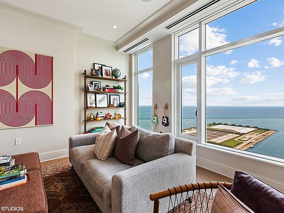 Designed by world-renowned Robert A.M. Stern Architects, One Bennett Park is the newest addition to the Chicago skyline commanding panoramic views of the lake and city. With just over 60 condominiums, One Bennett Park offers magnificent residences that sit adjacent to a large private park designed by Chicago's favorite landscape architect Michael Van Valkenburgh, creator of Maggie Daley Park and The 606. Residence 4503 is a spacious 3-bedroom, 3.5 bathroom of 2,403 square feet that offers an amazing floorplan, with stunning white oak hardwood flooring and 10' ceilings throughout. This home's north, east, and southern exposure captures jaw-dropping views of the lake, river, and city skyline. A grand entry foyer welcomes you into the home, leading into the beautiful living space with herringbone hardwood floors and direct views of Lake Michigan. True chef's kitchen featuring top of the line Sub-Zero and Wolf appliance package and wine tower, with timeless custom cabinetry and stone. The massive primary suite features a large spa-like marble bathroom, with heated floors, Kallista polished nickel fixtures, walk in shower, and free-standing tubs with spectacular southern views. A large walk-in custom closet and separate office nook complete the primary suite. Two additional oversized en-suite bedrooms with plentiful custom closet space in each. Smart home features include motorized shades and automated lighting system, whole home AV, as well as zoned heating/cooling with Nest thermostats for ultimate comfort. Generous additional closet space and separate utility room with a full-size washer/dryer and utility sink complete this gracious residence. Building features best in class condo amenities to include a private limestone and granite motor court, 24-hour door staff, concierge, and valet, a large fitness and wellness studio designed by Jay Wright of The Wright Fit including indoor and outdoor saltwater pools, 41st floor amenity suite and the option to utilize an additional suite of shared amenities and pet retreat. Two side-by-side indoor garage spaces available upon request for additional $.