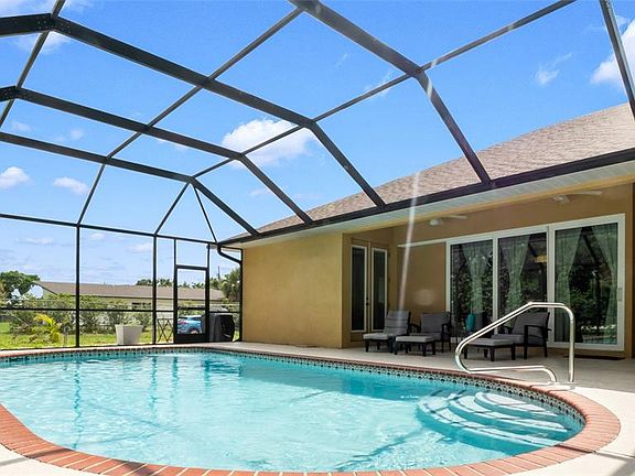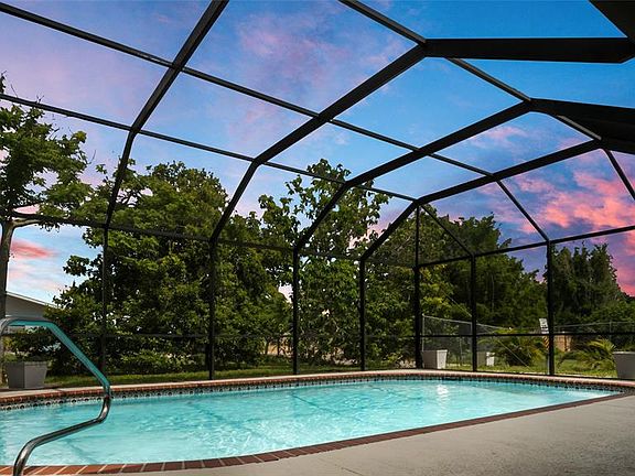 Screen-enclosed poolMature fruit-bearing treesTropical paradisePrivate backyard oasisSparkling poolShaded lanai areaOversized lot