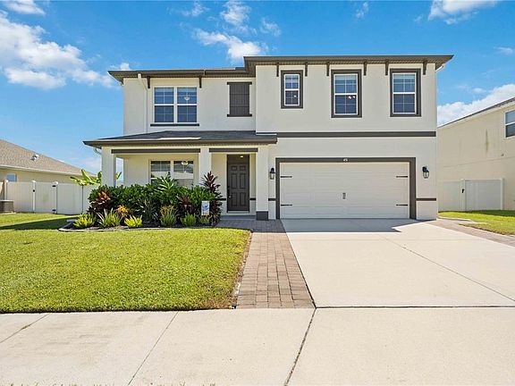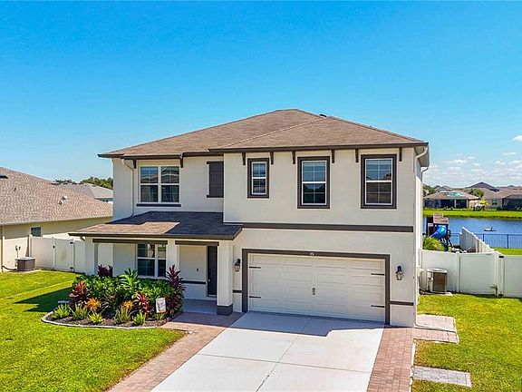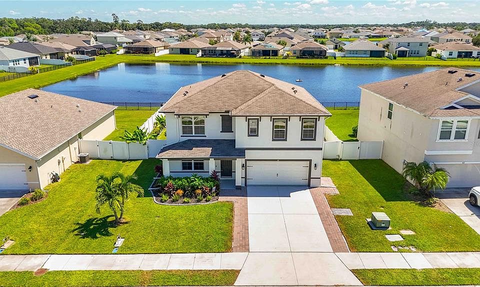 Welcome to your dream home in the peaceful, gated community of Del Tierra, offering NO CDD fees and LOW HOA! This stunning 5-bedroom, 3-bath home features a flex/game room, loft, and open-concept design, all set on a block-on-block construction with a beautiful fountain and large pond view. With over 2,590 sq. ft. of living space and a huge fully fenced backyard, this property is perfect for entertaining or simply relaxing. Enjoy your oversized covered lanai complete with three ceiling fans...while taking in breathtaking Florida sunrises. Recent Updates Include: Fresh interior and exterior paint. New kitchen cabinets and a newer dishwasher. New toilets and exhaust fans in all bathrooms. Hyper filter, and new coils for improved air quality. 30-amp breaker for generator hookup. Inside, you’ll be welcomed with style! Crown molding on the first floor with luxury vinyl flooring throughout, NO CARPET, and a thoughtfully designed open kitchen featuring stainless steel appliances, granite countertops, a tile backsplash, and new cabinetry. A flex/game room sits just off the entry, while a guest bedroom and full bath provide convenience on the main level. Upstairs, the oversized master suite boasts dual vanities with granite countertops, a stand-up shower, and two separate walk-in closets. A great-sized laundry room is located on the second floor. Three additional bedrooms, a full bath, and a loft complete the second floor. Outside, you’ll appreciate rain gutters, an extended paver driveway for extra parking, and a charming front covered porch, which is the perfect spot to unwind and enjoy spectacular sunsets. Reclaimed water Irrigation on the front and side of the home. Minutes to SR-64, I-75, and Ft. Hamer Bridge. Close to Gene Witt Elementary (bike ride away). Nearby shopping includes Costco and many more! Residents of Del Tierra enjoy access to a resort-style pool, fitness center, and gated entry, all while being surrounded by nature and tranquility. This home offers it all...stylish design, tasteful upgrades, and a prime location. Don’t miss your chance to make it yours!