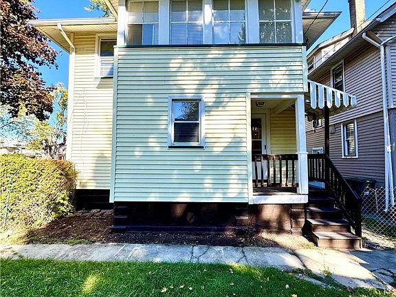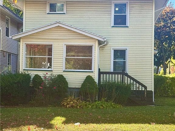 Charming from the start, this beautifully updated corner lot home in the Maplewood District blends classic character with modern comfort throughout. The entire home has seen a refresh for the exterior and interior. Step through the enclosed front porch, featuring a traditional entry door and original hardware, setting the tone for the home’s classic charm. Inside, you’ll find a spacious living room that spans nearly the full width of the home, large enough to be divided into both a comfortable living area and dining space if desired. The kitchen offers flexibility as well, with room to function as an eat-in kitchen by simply relocating the refrigerator to the butler’s pantry. The pantry itself serves as a passthrough to the living room, maintaining great flow throughout the first floor. Upstairs, you’ll find three bedrooms and a beautifully updated full bathroom featuring a new vanity, tile, and bathtub. One of the bedrooms includes its own private enclosed walkout porch, perfect for enjoying a morning coffee or evening breeze. The full attic offers excellent potential to be finished and transformed into an additional entertaining or flex space. Outside, the property features a detached three-car garage with a newly finished floor and two new garage door openers. Most of the windows have been replaced, the furnace is newer, and the water heater was replaced in 2017. The full basement adds ample storage and utility space, with washer and dryer hookups.