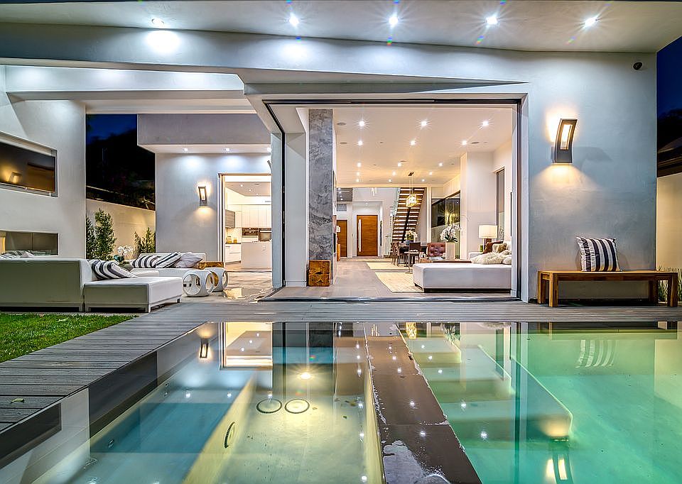 Stylish modern home featuring 4 bedrooms (plus upstairs flex space), 5.5 bathrooms, pool, spa, 3 fireplaces, and 2-car garage. Custom designer kitchen is outfitted with Miele and Thermador appliances, and features a gorgeous stone slab backsplash. A well-thought out design provides a most-functional use of space, and allows natural light to flood the home on both levels. Two sets of Fleetwood pocket doors makes for a seamless transition in the opulent indoor/outdoor living spaces. An entertainer's backyard featuring pool, spa, and cabana with fireplace becomes an extension of your living space. LED lighting and music throughout, courtesy of the home's smart system. Welcome home to 451 N Harper Ave!