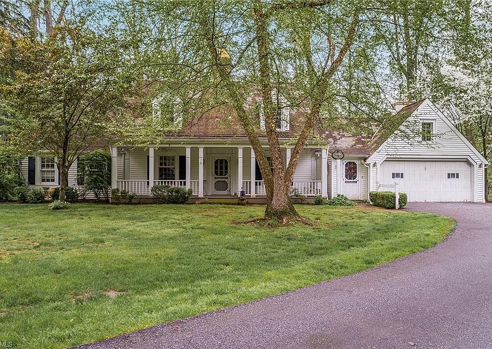 Welcome to this quintessential Gates Mills Cape Cod set on a private ridge overlooking Chagrin River road, easily a short walk to the North Chagrin Reservation. The property also includes a 3 stall barn for horses, animals, or storage as well as 2 fenced pastures. Spend lazy summer nights on the charming porch that spans the front of the house. The mature trees provide ample shade. Step inside through the first floor laundry room into the newer kitchen that overlooks the generously sized family room with wood burning fireplace. The first floor owners' suite is a true oasis with a vaulted ceiling, bay window, spacious walk in closets, ample storage space, and a cozy, wood burning fireplace. A spacious dining room with hardwood floors and wood burning fireplace, office/sun room with vaulted ceiling, and screened in porch round out the first floor. 3 additional bedrooms and 2 full bathrooms can be found on the second floor. A full, unfinished basement offers plenty of storage. Don't miss this charming Gates Mills property!