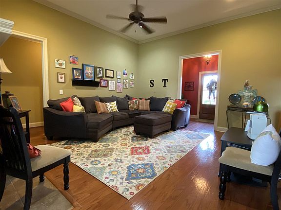 This gorgeous home sits on a lot high above most other homes in the subdivision with the backyard being very level. As you enter the front door, you will be in the perfect sized foyer with enough room for your entry decor. You will immediately notice the high ceilings and crown moulding throughout the entire home. The living room is very cozy and has plenty of room for large furniture. The kitchen is partially open to the family room, has matching appliances (that REMAIN), electric range, and ample counter/cabinet space. The walk-in laundry room has a custom built pantry. In the master bedroom, you'll find more than enough space for a king bedroom suite and french doors that open to the master bath. In the master bath you'll find a double vanity, jetted tub, separate shower, separate toilet room, and a large walk-in closet with built in shelves AND drawers! You will also find ample closet space in bedrooms 2 and 3 , which are both very nicely sized! Step out back and you'll find a covered patio that looks over a large, level, and fully fenced backyard! Don't miss seeing this beautiful home!