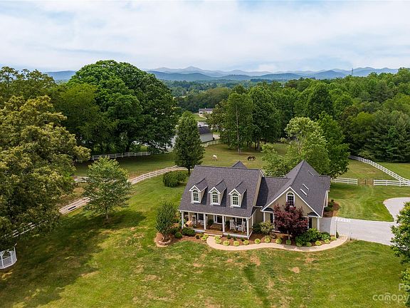 Stunning horse farm! Sited on a low ridge, this property has pastoral views in almost every direction along with long range views of Mt Pisgah. Very open, well lit home with 3 board fencing, a barn with 3 stalls, and hay loft. Porches on the front and rear make it possible to sit outside in rain or shine. Oak hardwood flooring throughout the main level except for tile in bathrooms and carpet in 1 closet. Vinyl planks upstairs is convenient for cleaning up after kids. Large patio in the rear is perfect for grilling and entertaining. New roof installed in 2022. The house was painted in 2021. Kitchen appliances are approximately 2 years old. The crawlspace has been conditioned to prevent moisture via vapor barrier and dehumidifier. Westwind subdivision limits subdividing to a 5 acre minimum, so you'll have some elbow room. Overall, this is a beautiful home in one of the prettiest areas of Henderson County and the neighborhood is a great place to live!