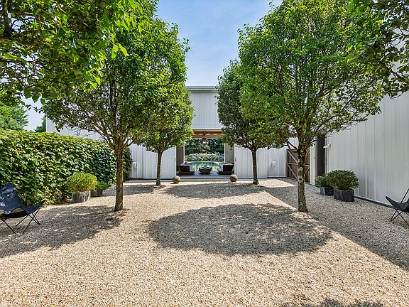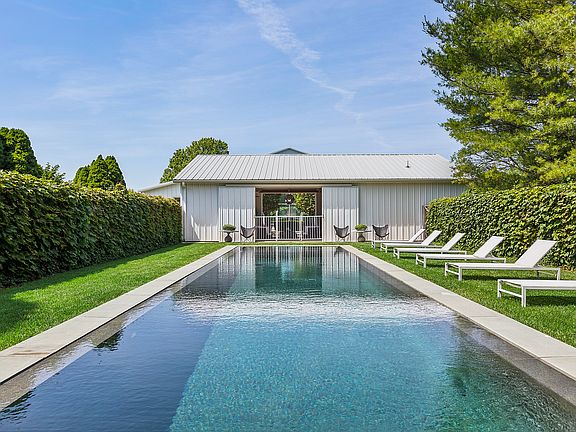 Experience your summer in this recently renovated modern-style barn nestled between Bridgehampton farmlands. This 5-bedroom, 5.5-bathroom residence offers a harmonious blend with outdoor living areas. With its open-concept living and a gourmet kitchen, it's perfect for entertaining. The pool house, designed with openings on all sides, ensures effortless movement between the courtyard and pool. Enjoy evenings playing bocce ball or relaxing by the outdoor fireplace, soaking in the breathtaking western sunsets over the fields