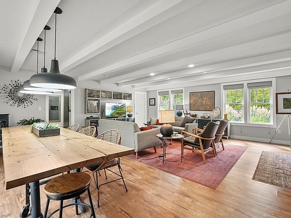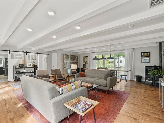 Spacious single-level living in beautiful Plymouth on Morey Pond! This expansive 3-bed, 3-bath Ranch offers incredible space & comfort in a sought-after location - direct pond frontage w/ its very own beach and dock! The sun-filled living & dining area features beamed ceilings, abundant natural light, & slider access to the backyard. The well-appointed kitchen is a chef’s dream, showcasing modern SS appliances, dual wall ovens, gas cooking, a large center island, & a separate pantry w/ exceptional storage. Two of the three bedrooms feature walk-in closets and private en-suite baths, offering the perfect retreat for yourself or guests. A 3rd full bath & convenient laundry area complete the main level. Enjoy the changing seasons from the charming screened-in porch w/ vaulted ceilings & access to the back patio. Additional highlights include a 2-car garage w/ a workshop area & 3 detached outbuildings! This Plymouth gem wont last!