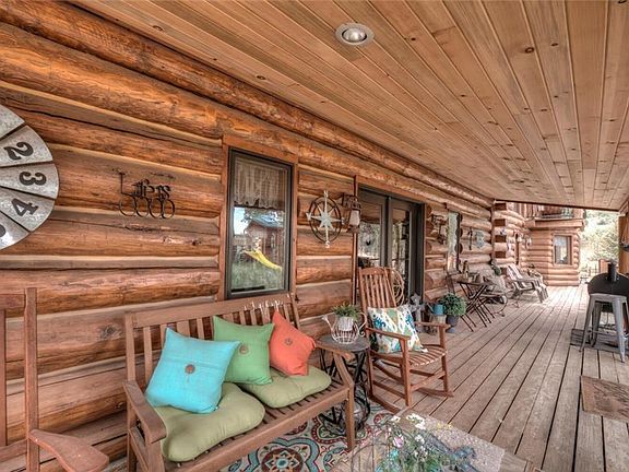Significant Price Reduction - Bring offers! Majestic log home on over 7 acres, minutes to the city, minutes to the mountains. Meticulously maintained this spacious home welcomes the whole family - 3 dens, fitness room, pool/bar/dining room, 3 gas/1 wood fireplaces and 1,500 sq ft deck for entertaining. Proposed shop/barn site is level with power/water and approved plans. On a quiet cul de sac this custom home affords all the solace and luxury of living in the mountains. Fully furnished.