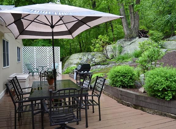 Beautifully cared for complete with new kitchen updated baths sunny family room with french doors to private deck perfect for entertaining or quiet time with the paper. Perennial gardens Lake rights for swimming boating playground tennis basketball courts. Easy 10 minute drive to Metro North trains.