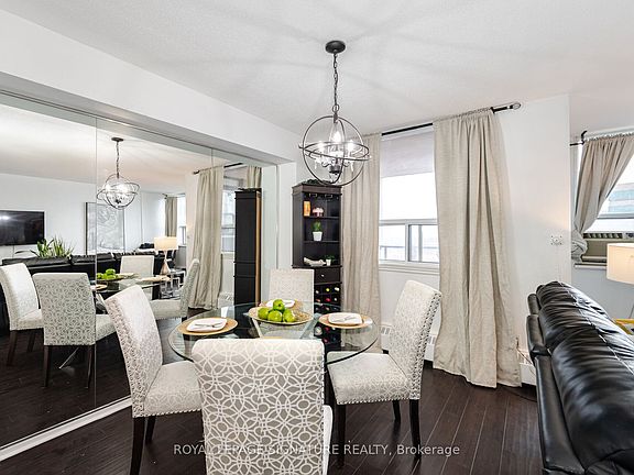 Client RemarksAMAZING VALUE!!!!!! Updated and Spacious one bedroom suite in desirable and well managed Sussex House! A must see with over 800 sq ft of living space and tasteful and neutral quality upgrades. The Large bedroom is able to accommodate a King size bed and Dressers and boasts a roomy walk in closet. The open concept Living and Dining rooms are equally large ...Perfect for those that like to entertain! The kitchen has been updated and features Stainless appliances and In-suite laundry. The updated 4 pc bathroom features modern ceramic floors and tub surround. The open balcony offers some of the best views in the building with a Stunning Panoramic view of the Toronto Skyline. Building amenities include a heated outdoor pool, tennis courts Gym Sauna and much more !!! **EXTRAS** Existing Stainless Fridge, Stainless Stove, Washer, Dryer, Window Air conditioner.