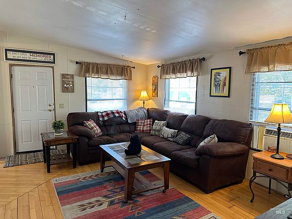 Great starter home or rental in McCall. Has a large open floor plan for the living area and kitchen. Is being sold turnkey. Includes king bed and stands in the master bedroom, 2 bunk beds, kitchen table with chairs and bench, sectional couch with coffee and end tables, 3 TVs, and much more. Over sized garage, 14 X 24, with lots of space for storage. Back deck with BBQ grill and fire pit. Has some history as a vacation rental. Nicely decorated.